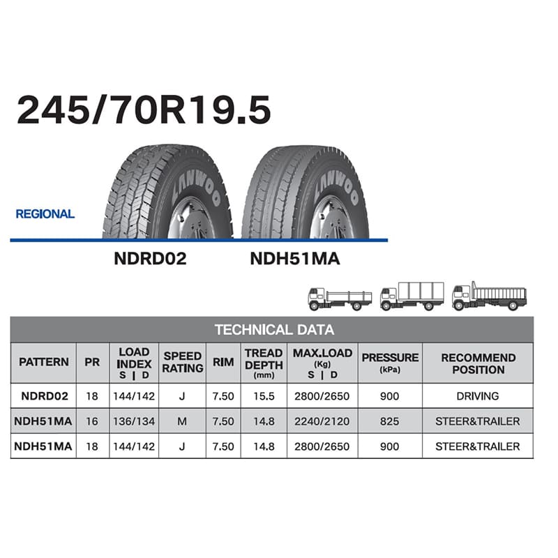 Patrón de laminillas onduladas para neumáticos de dirección premium para transporte regional.